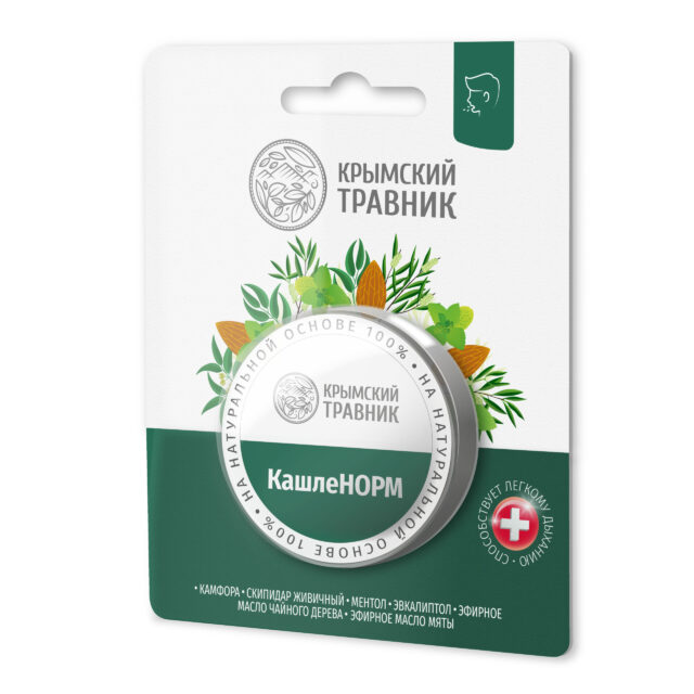 Бальзам «КашлеНОРМ» – природная забота о дыхании, создан для бережного ухода и облегчения состояния при сезонных недомоганиях. Бальзам мягко согревает грудную клетку, помогая организму справиться с простудой и кашлем, облегчает дыхание при заложенности носа, создает ощущение комфорта в горле. Помогает уменьшить дискомфорт при кашле.