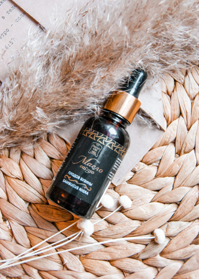Экстраординарное косметическое масло бузины на основе плодов бузины чёрной Sambucus nigra и масла цветков ромашки аптечной Matricaria chamomilla, источника рутина, холина, хамазулена, бисаболола для предупреждения воспалительного процесса при псориатических симптомах.