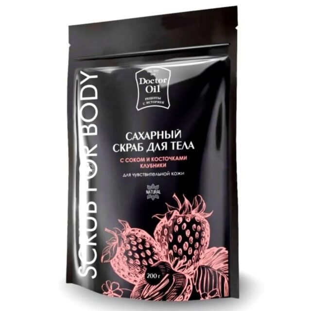Скраб для тела сахарный с соком и косточками клубники для тела эффективно удаляет ороговевшие клетки, ускоряя проникновение ценных увлажняющих омолаживающих компонентов в глубь кожного покрова.