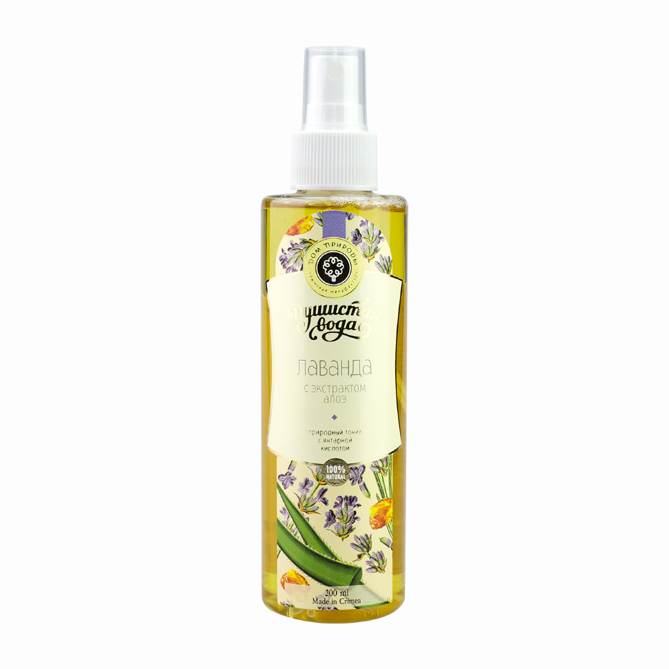 Лавандовая вода (гидролат), дополненная экстрактом алоэ и эфирными маслами, успокаивает кожу любого типа, снимает воспаления, заживляет повреждения. Янтарная кислота — уникальное природное вещество, способное обновлять кожу на клеточном уровне и замедлять старение.