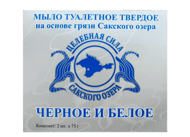 Мыло туалетное твердое «Черное и белое» изготовлено ручным способом из высококачественной мыльной основы с добавлением грязевых препаратов иловой сульфидной грязи Сакского озера.
