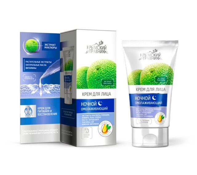 Крем для лица ночной омолаживающий. С маклюрой, растительными экстрактами и натуральными маслами.