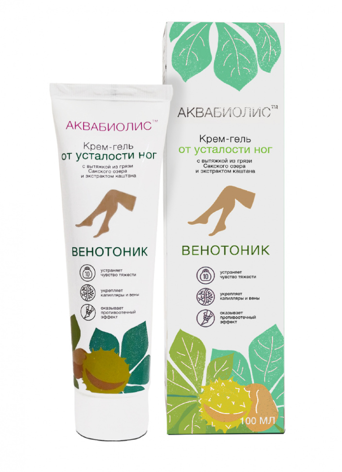 Крем-венотоник оказывает противоотечный эффект, дарит тонус и ощущение свежести. Устраняет чувство усталости и тяжести в ногах. АКВАБИОЛИС укрепляет стенки капилляров кожи и вен, борется с «сосудистой сеточкой», тонизирует кожу, создает ощущение свежести и прохлады. Снимает усталость, способствует лёгкой ходьбе, уменьшает отеки, укрепляет стенки сосудови повышает эластичность вен. Cтимулирует кровообращение в коже. Подходит для ежедневного применения.