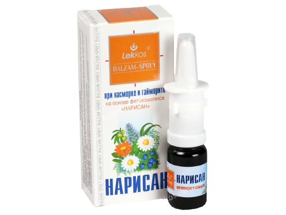 Сочетание лекарственных растений и эфирных масел дает положительный эффект, на организм это лекарство оказывает положительное воздействие. Кроме того, что бальзам стимулирует местный иммунитет, он еще и улучшает кровообращение в органах дыхательных и верхних путей и в легких. Спрей-бальзам Нарисан оказывает антибактериальное, антисептическое, регенерирующее, противовоспалительное, антивирусное, ппротивоотечное действие.Данный препарат очень эффективен для профилактики, и при острых состояниях. Бальзам-спрей для носа «Нарисан» показан в таких случаях: простуда, ОРВИ с выделениями из носа, заболевания дыхательных и верхних путей (ларингит, фарингит, гайморит, ринит и т.д.), чихания, затрудненное носовое дыхание.