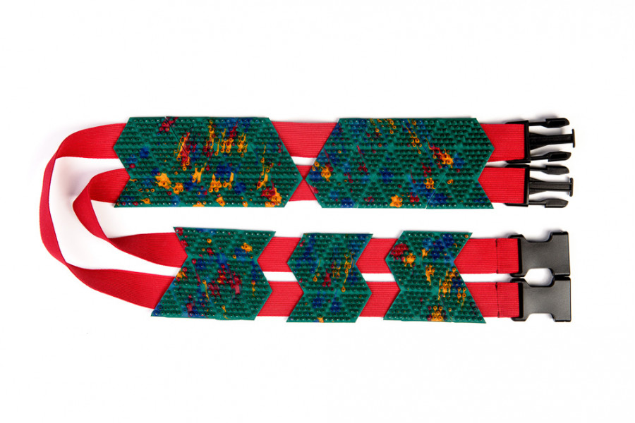 «Пояс универсальный 4,3 Ag (М)» состоит из 5 подвижных пластин и 2 регулируемых поясов, которые позволяют перемещать пластины, выбирая удобное положение для воздействия на небольшие участки головы, туловища, верхних и нижних конечностей (размер одной пластины, фиксируемой в области глаз, — 140х65 мм (2 шт.), размер 3-х пластин, фиксируемых на область затылка, — 90х65, 68х65, 77х65 мм).