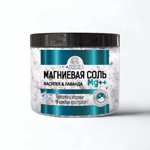Состав: магний хлористый шестиводный — бишофит (соль древнего моря), каприк/каприлик триглицериды, эфирное масло лаванды, эфирное масло бергамота, сухие лепестки и веточки цветков лаванды и василька.