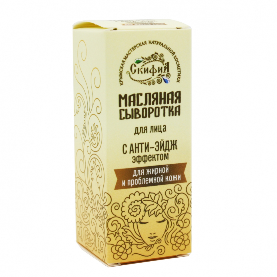 Сыворотка представляет собой высококонцентрированное косметическое средство из дорогих и редких масел с омега кислотами и активными элементами, проникающими в самые глубокие слои кожи, причем эти ингредиенты в масляной сыворотке проникают в кожу гораздо быстрее и глубже, чем в кремах или гелях. По консистенции сыворотка является промежуточной между гелем и маслом. В сравнении с масляной смесью она гораздо легче. Жирная кожа характеризуется нарушением работы сальных желез, но это не значит, что ее нужно только подсушивать. Работа сальных желез в усиленном режиме – это реакция их на неправильный уход. Средства ухода должны быть мягкого действия, поскольку агрессивные очищающие составы вынуждают ее производить еще больше себума. Сыворотка содержит омега-3 жирные кислоты, являющиеся злейшими врагами хронического воспаления. Они борются с акне, ускоряют заживление, служат важным компонентом лечения хронических дерматитов. Масляная сыворотка для лица С АНТИ-ЭЙДЖ эффектом для жирной и проблемной кожи легко впитывается, регулирует избыточный жирный блеск, оставляет ощущение шелковистости, выравнивает рельеф кожного покрова, в ее состав входят масла, оказывающие противовоспалительное действие, усиливающееся действием натуральных эфирных масел, обладающих легким подсушивающим и регенерирующим эффектом.