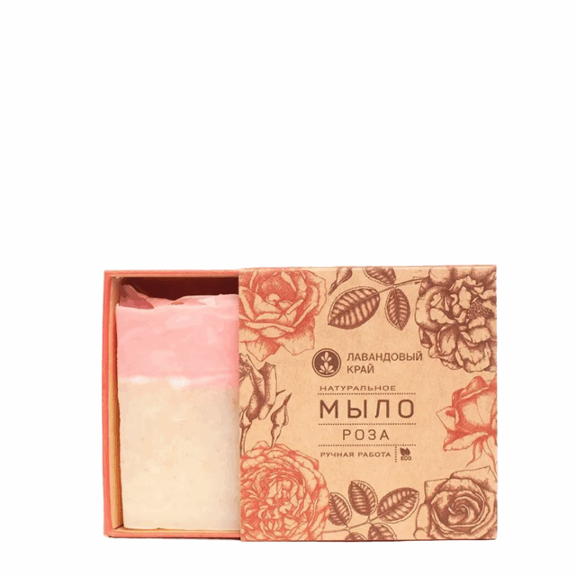 Состав: омыленные оливковое, кокосовое, пальмовое масла, масло персиковых косточек, масло сладкого миндаля, масло ши, эфирные масла герани, розы, ладана, пальмарозы, лепестки розы, кармин, витамины А, Е.