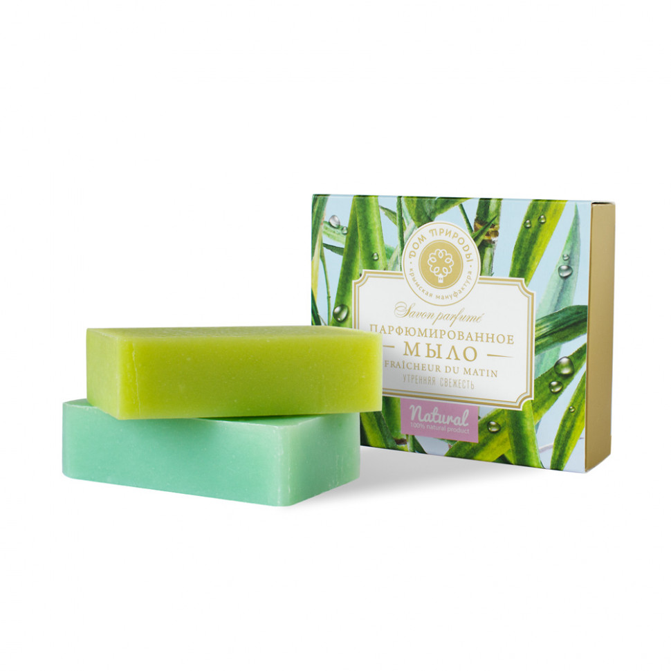 Набор парфюмированного мыла «Утренняя свежесть» прекрасно подходит для ежедневного ухода. Натуральное мыло ручной работы создано на основе растительных масел с добавлением эфирных масел и экстрактов полезных растений. Мыло бережно ухаживает за кожей любого типа, смягчает ее и увлажняет. В аромате звучат свежие морские нотки. Парфюмированное мыло бережно очищает кожу, оставляя на ней легкий след освежающего аромата. Состав набора: Парфюмированное мыло Молодой Бамбук: омыленные растительные масла (оливковое, кокосовое, касторовое), вода подготовленная, облепиховое масло, кедровое масло, экстракт хвои, воск пчелиный, эфирные масла вербены, сосны, лайма, парфюмерная композиция, хлорофиллин. Парфюмированное мыло Свежая Роса: омыленные растительные масла (оливковое, кокосовое, касторовое), вода подготовленная, масло расторопши, масло льна, экстракт ромашки, воск пчелиный, эфирные масла лаванды, лемонграсса, жасмина, парфюмерная композиция, хлорофиллин. Объём: 2 бруска по 100г.
