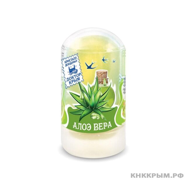 Дезодорант «Доктор Крым» с экстрактом Алоэ-Вера называют «Природным дезодорантом», так как он содержит в себе кристаллы натуральной минеральной соли (квасцов), что делает его отличной альтернативой искусственным веществам, входящим в состав дезодорантов других марок. Экстракт алоэ вера смягчает кожу подмышек и заживляет раздражение на коже. Абсолютно гипоаллергенный, подходит даже для самой чувствительной кожи, не оставляет следов на одежде. Все дезодоранты марки «Доктор Крым» гипоаллергенны и рекомендованы дерматологами.