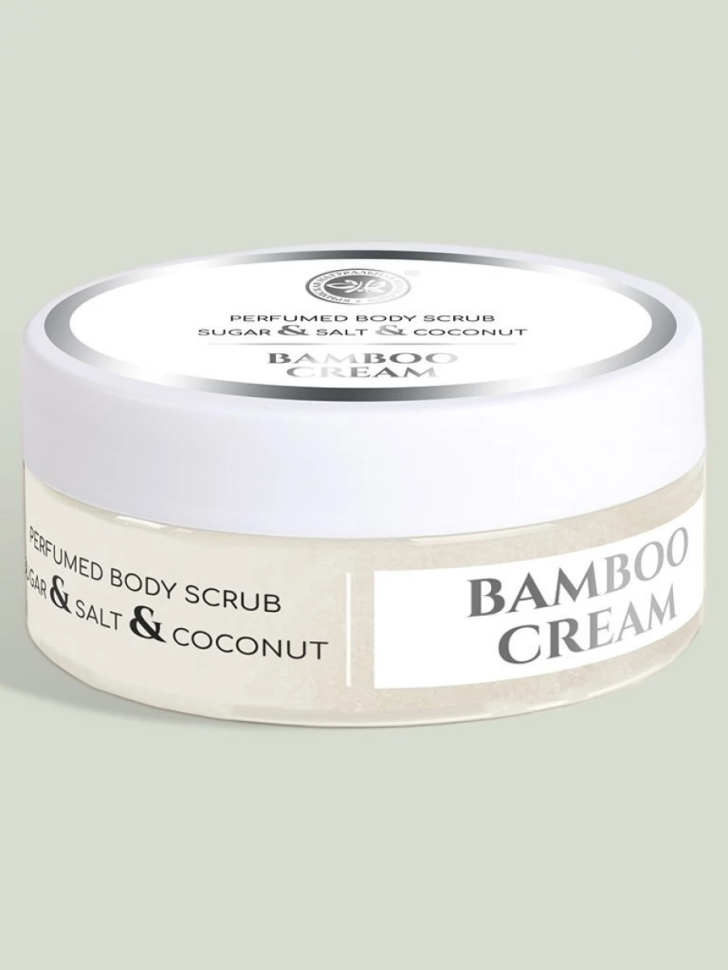 Парфюмированный сахарно-солевой скраб для тела Bamboo Cream с кокосовой стружкой и маслом авокадо бережно очищает, смягчает и тонизирует кожу, придавая ей аромат вашего любимого парфюма.