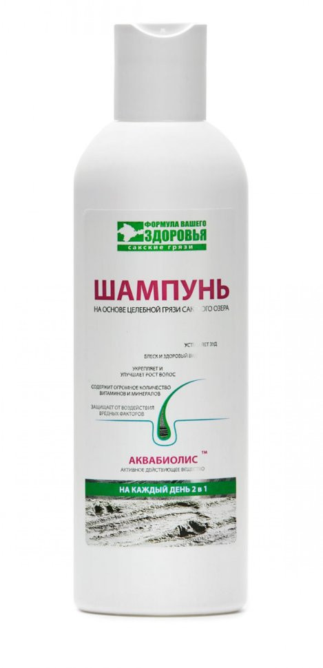 Натуральный шампунь на основе грязи Сакского озера «2 в 1» мягко очищает волосы и кожу головы от загрязнений. Оберегает от обезвоживания, удаляет токсины, разрушающие фолликулы волос. Отжим иловой сульфидной грязи Сакского озера (АКВАБИОЛИС) содержит огромное количество витаминов и минералов, которые производят целебное действие волосам. Натуральные растительные компоненты ежедневного шампуня «2 в 1» приглаживают поверхностные чешуйки волоса и делают его эластичным, снимают статическое электричество, придают приятную шелковистость. Подходит в качестве основного средства для мытья головы, в том числе для ежедневного использования. Придает волосам блеск и здоровый вид.