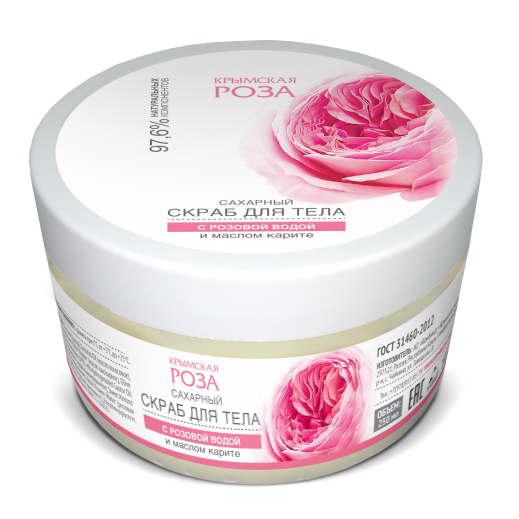 Состав: Sucrose (сахар), Coconut Oil (масло кокосовое), Butyrospermum Parkii Butter (масло ши/карите), Olive Oil (масло оливковое), PEG-40 Hydrogenated Castor Oil (масло касторовое гидрогенизированное), Sweet Almond Oil (масло миндальное), Rose Flower Water (розовая вода), Tocopheryl Acetate (витамин Е), Ethylhexylglycerin, Parfum, Phenoxyethanol, BHT, CI 16255.