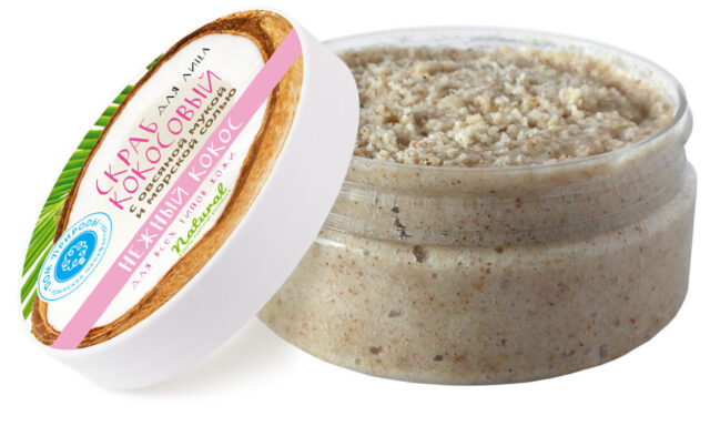 Кокосовый скраб для лица “Нежный кокос” подходит для бережного очищения кожи любого типа.