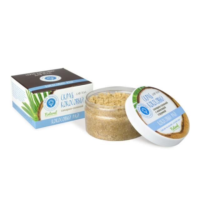 Кокосовый сахарно-соляной скраб «Кокосовый рай» покорит вас своим дразнящим ароматом и мысленно перенесет на тропические острова.