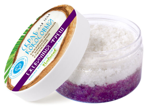 Кокосовый сахарно-соляной скраб «Ежевичный фреш» с невероятно летним ягодным ароматом бережно очистит кожу и наполнит ее здоровым сиянием.