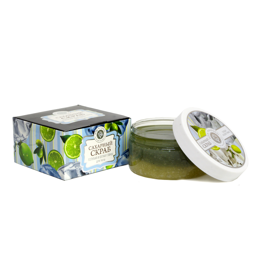 Голубая глина обладает очищающими свойствами, дезинфицирует кожу, активизирует кровообращение и усиливает процесс обмена веществ в клетках. Белая глина (коалин) выравнивает цвет кожи, всесторонне ее оздоравливает, насыщая полезными веществами: кремнием, цинком, калием, натрием. Коалин способствует выработке коллагена, который отвечает за эластичность и упругость кожи. Сахарные кристаллики в сочетании с маслами оливок, репейника и жожоба бережно очищают кожу от загрязнений и отмерших клеток, делают ее мягкой, нежной и шелковистой. После скраба не требуется применение дополнительных средств для увлажнения кожи.