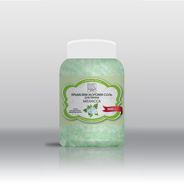 Состав: соль морская, эфирное масло мелиссы, краситель пищевой R 100.