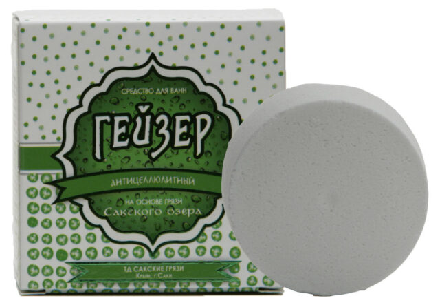 Способ применения:1 таблетка на одну ванну.Оптимальная температура воды – от 36 до 38 градусов.Ванна с гейзером – это не купание, поэтому, чтобы кожа лучше впитала в себя полезные вещества, надо помыться под душем с мылом.Продолжительность одного сеанса — не более 20 минут.Не требуется послепроцедурный душ.Состав: Растительные экстракты: ромашки, зверобоя, календулы, хвощ полевой, листья моркови, корень лопуха. Эфирное масло лаванды, мяты. Грязь иловая сульфидная Сакского озера.