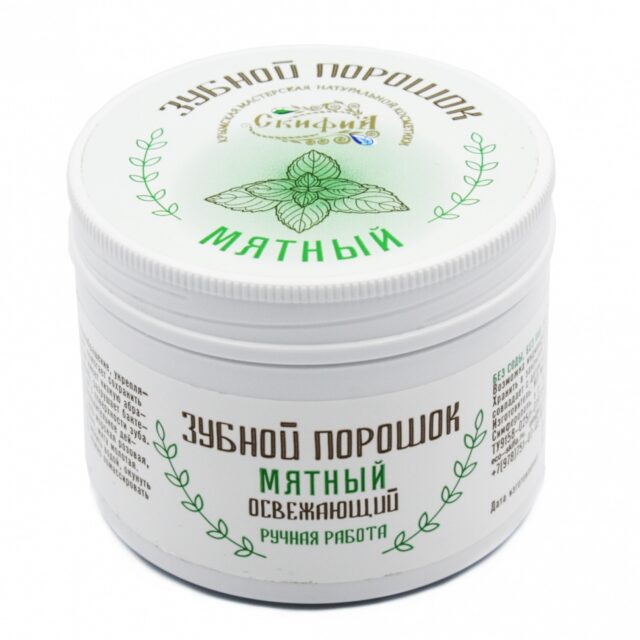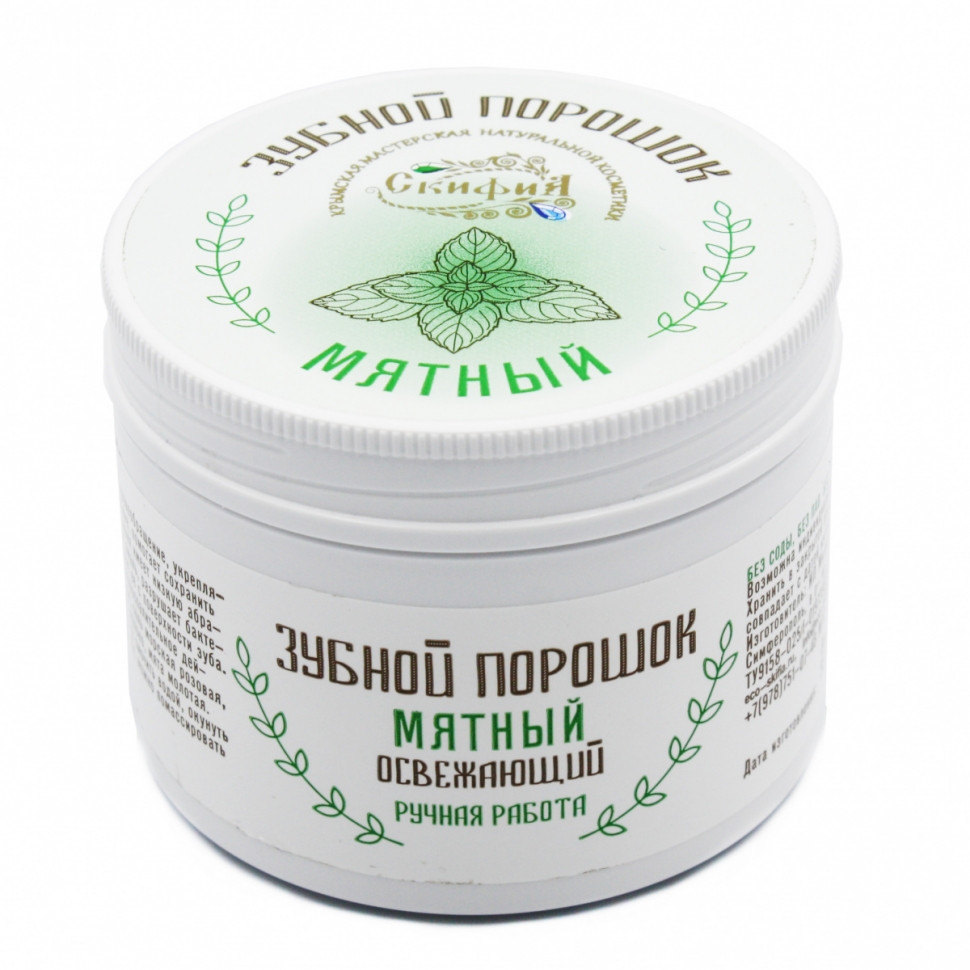 Состав: глина белая, соль морская розовая, диоксид кремния, сухое молоко, мята молотая.